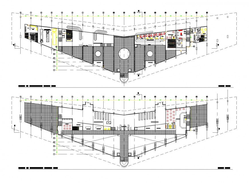 Hatching commercial building plan autocad file, centre lien plan detail, dimension detail, naming detail, hatching detail, hidden line detail, stair section detail, section lien detail, column detail, truck parking detail, projection detail, cut out detail, etc.