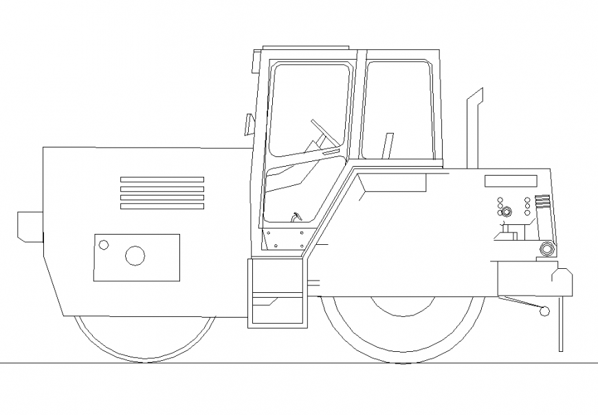 Rullo asphalt plan layout file, wheel detail, nut bolt detail, side elevation detail, mirror detail, reinforcement detail, steel body structural detail, door and window detail, main hole detail, not to scale detail, etc.