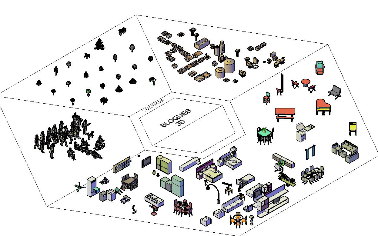 A 3d autocad block including in a furniture details like sofa, chir, table , etc, people block and trees block 3d autocad block download file, 3d autocad block dwg file, 3d autocad block