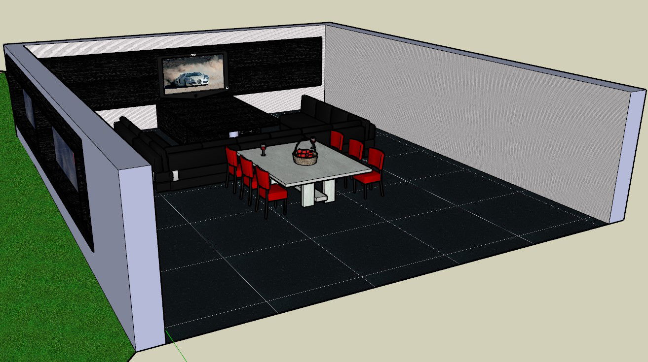 A 3d drawing room design provide in dining table, sofa, LCD T.V, . 3d drawing room design download file, 3d drawing room design draw in sketchup format.