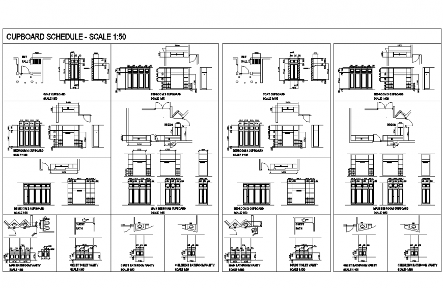 Sched Cupboard furniture detail dwg file, dimension detail, naming detail, top elevation detail, front elevation detail, section detail, hatching detail, door and window detail, scale 1:10 detail, hidden lien detail, sink detail, etc.