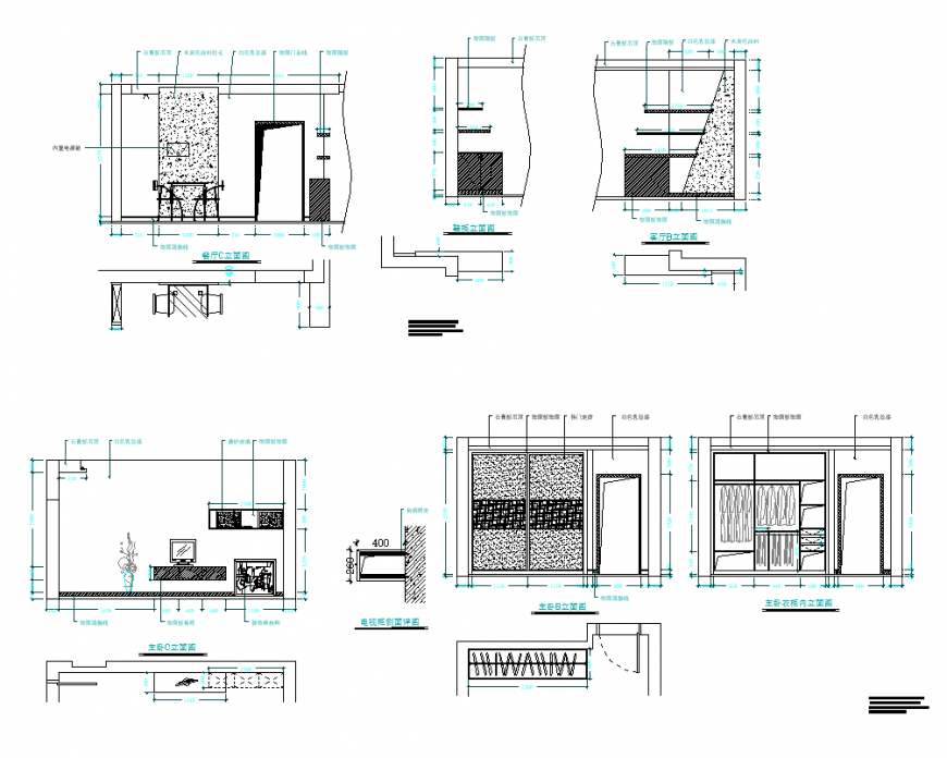 Living room furniture plan layout file, front elevation detail, cut out detail, furniture detail in door, table, chair and window detail, hatching detail, wooden material detail, cub board detail, brick wall detail, specification detail, etc.