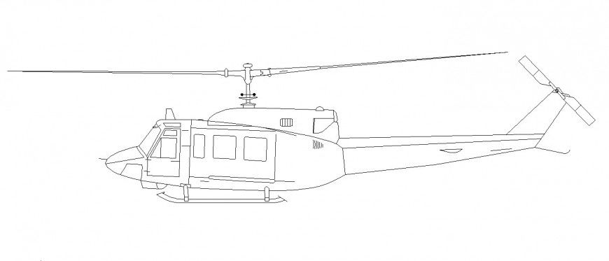 Helicopter 2d model design dwg file,here there is 2d model design of a chopper , side view of a chopper in auto cad format