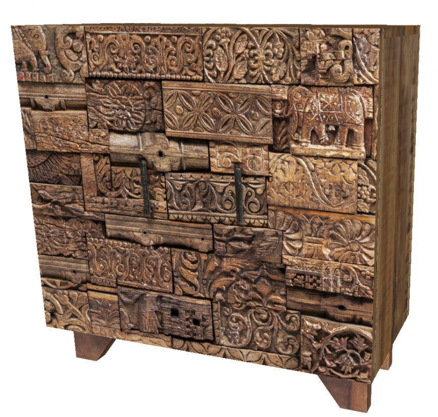 3d drawing of traditional dressing table. detail drawing of 3d, traditional dressing table, carving surface, with all side view.