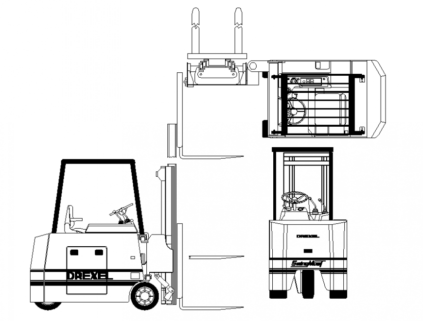 Forklift drexel dwg file. Forklift drexel top view detail, front view detail, elevation detail Forklift and many more in autocad format.