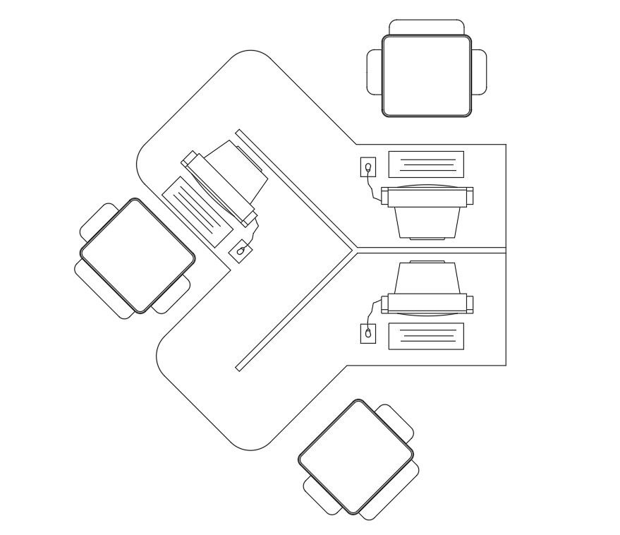Three set Computer Table With Top View In Drawing