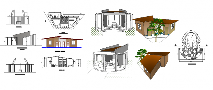 Compact house detail in dwg file. detail drawing of compact house, plan ,section and elevation details, all side view, dimensions and other details.