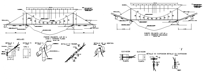 Suspension bridge-project drawing in dwg file. detail drawing of Suspension bridge-project, plan , elevation and section details, suspended ceiling joinery details.