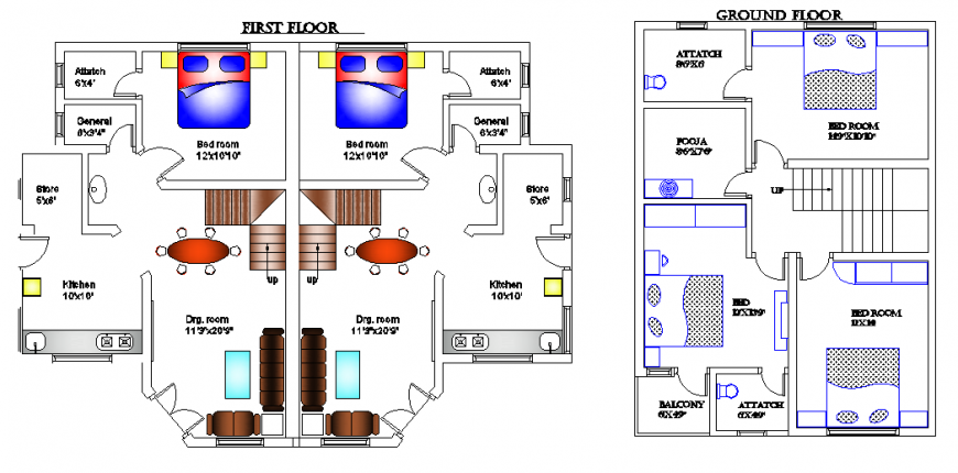 Twin house presentation in dwg file. plan detail view of twin house , first floor plan of twin house different unit plan with furniture details.