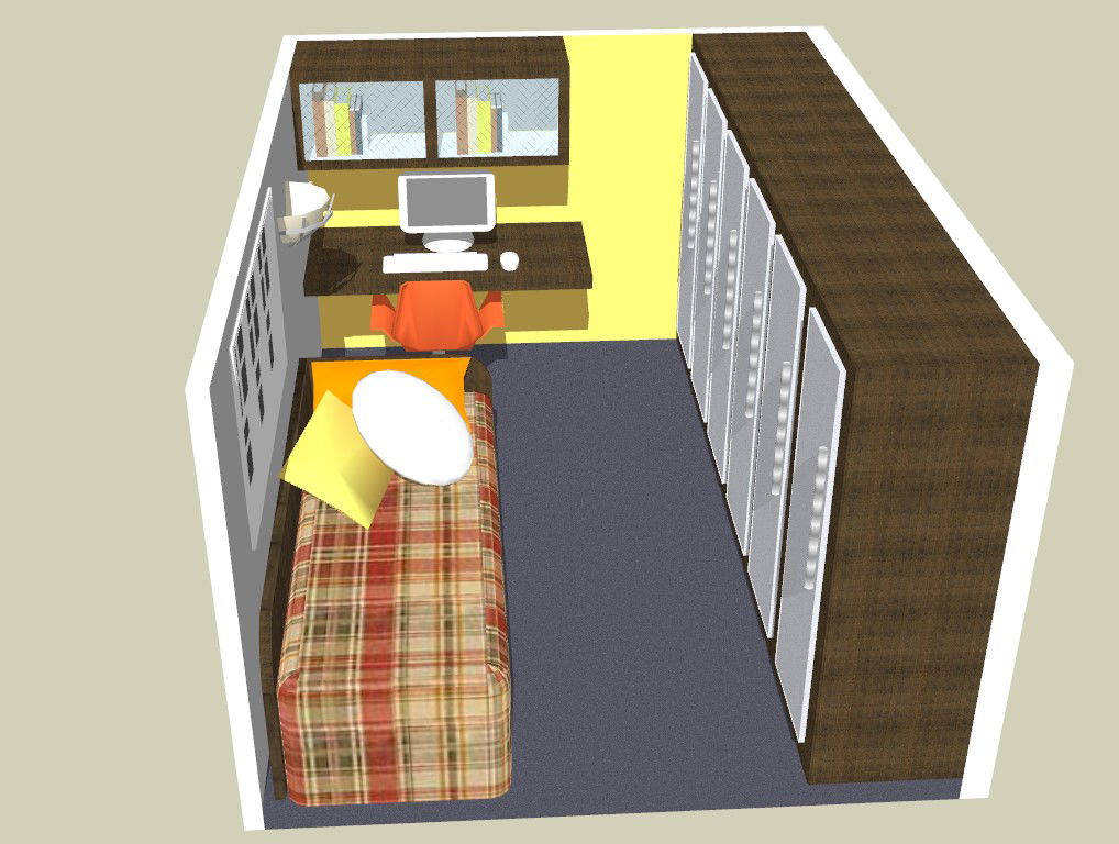 A 3d Bed room details including a single bed, LED T.V. , dower, chair, table, etc. 3d Bed room details download file, 3d Bed room details