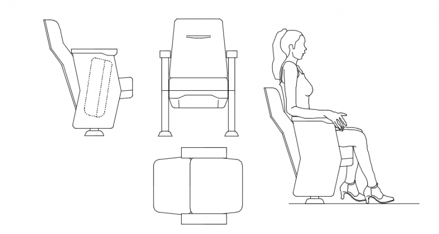 Reclinable theatre cinema seat,here there is top view of seat , recliner seat detailing in 2d