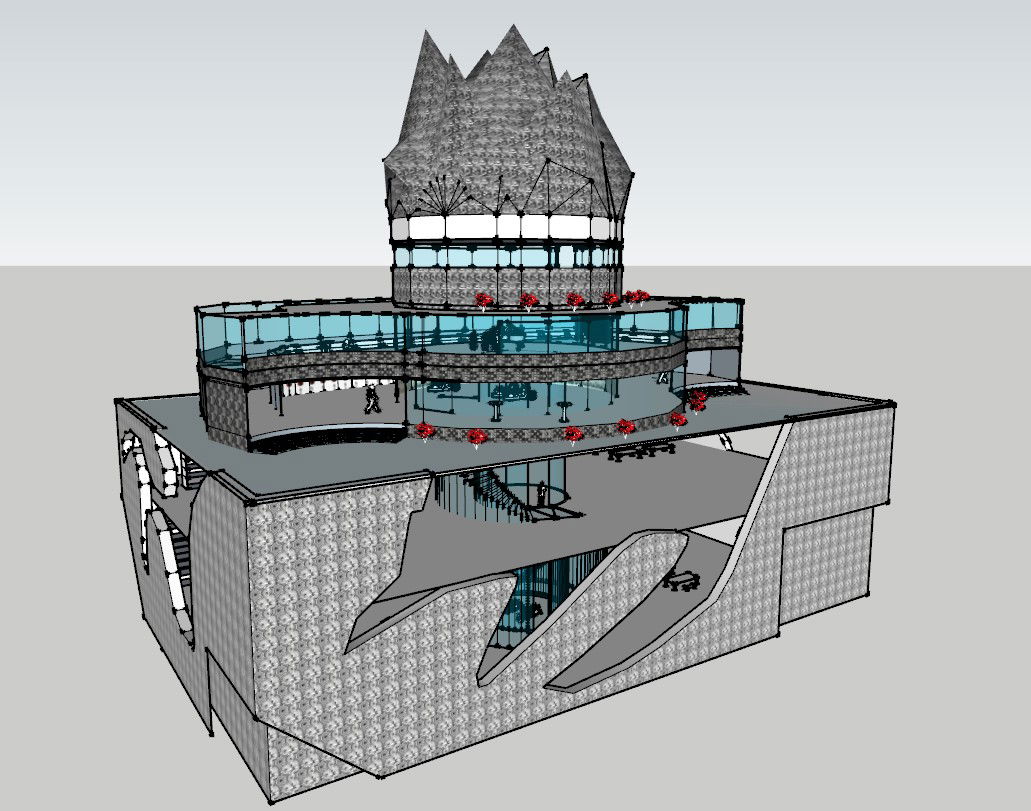 A Modern building design draw in sketchup format. Modern building design download file, Modern building design