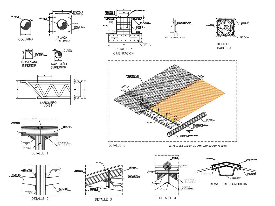 Roof Plan With CAD Block Design DWG FIle this Roof Section Drawing Detail Of Fixing The Wavy Plate Joist Cross Bar Cantrail, Cementician, This File Draw in autocad format.