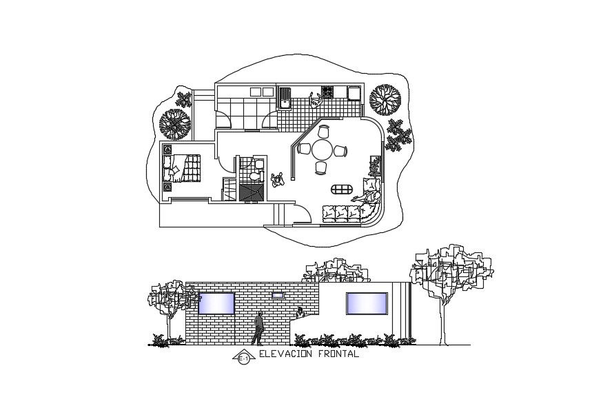 Modern House Design In AutoCAD File which provides elevation plan, layout plan, furniture details, bedroom details.