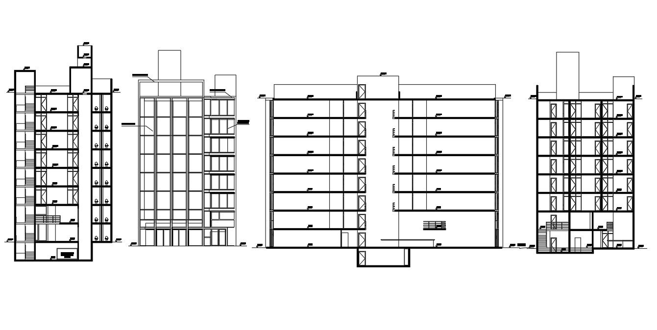 Office Building In DWG File which shows office section, Office Building Elevation Design,high rise building Detail.