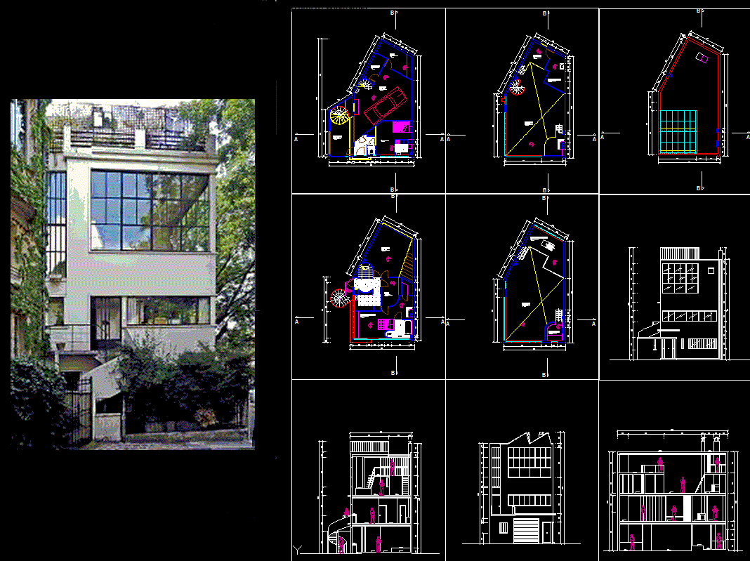 Ozenfant House by Le Corbusier CAD drawings in AutoCAD DWG file include architectural floor plans, elevations, and detailing of this modernist residential design.