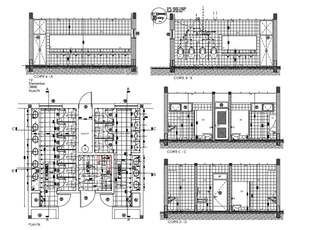Bathroom Four Side Section And Plan With AutoCAD File.This bathroom is a room for personal hygiene activities, generally containing at minimum a toilet and sink..Bathroom & Toilet Detail DWG File, .