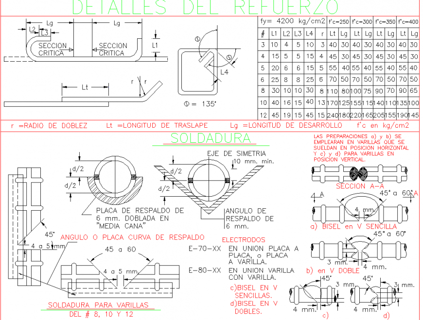 Reinforcement detail dwg file, dimension detail, naming detail, redius detail, stirrups detail, fy = 4200 kg / cm2 detail, hoe section detail, hidden line detail, hatching detail, steel bars detail, hook section detail, section A-A’ detail, section B-B’ detail, etc.