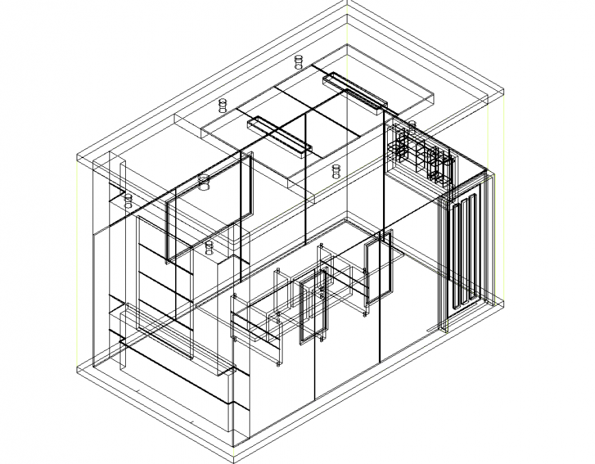 Isometric cabin plan layout file, furniture detail in door and window detail, brick wall detail, flooring detail, farming detail, not to scale detail, ceiling lighting detail, reinforcement detail, bolt nut detail, stirrups detail, etc.
