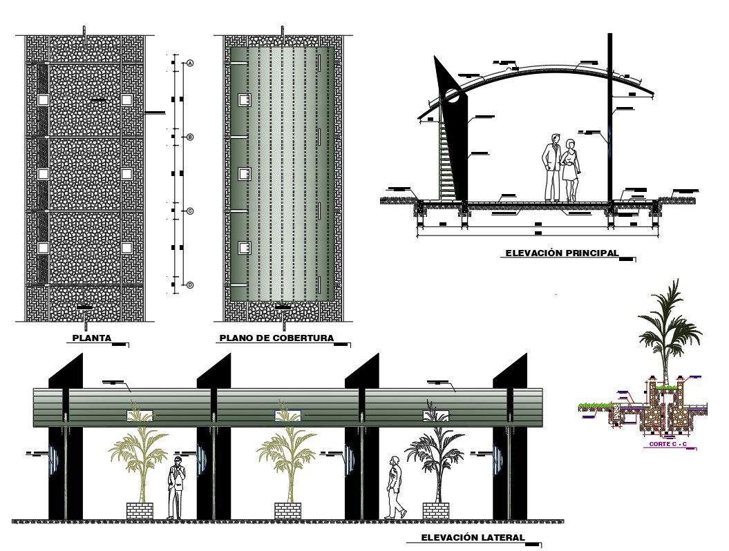 Mall Coverage Plan And Elevation With DWG File.this including for elevation shows in one capal in Drawing for, layout plan in for Departure design and section for tree drawing other download file,