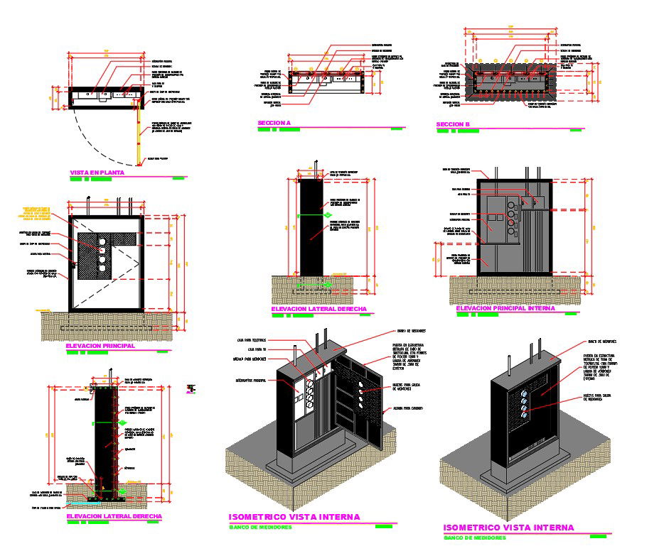 Meter banking Project For DWG File.this For Include plan,four side Elevation,two side section,Isometric Vsna In Ternaf or Drawing Module For Meters, Switch Principal, Box For Phones for download file,