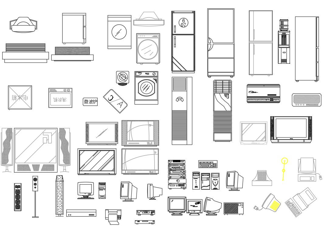 Electrical CAD Block Drawing For AutoCAD File.This Shows T.V ,Computer,A.C And Electrical Cad Block For Download File