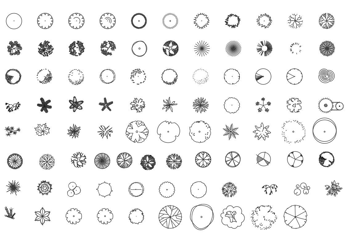 88 different views of a tree are shown in the design, this is a top elevation of a tree , this dwg are designed in autocad, yoo can download this also.