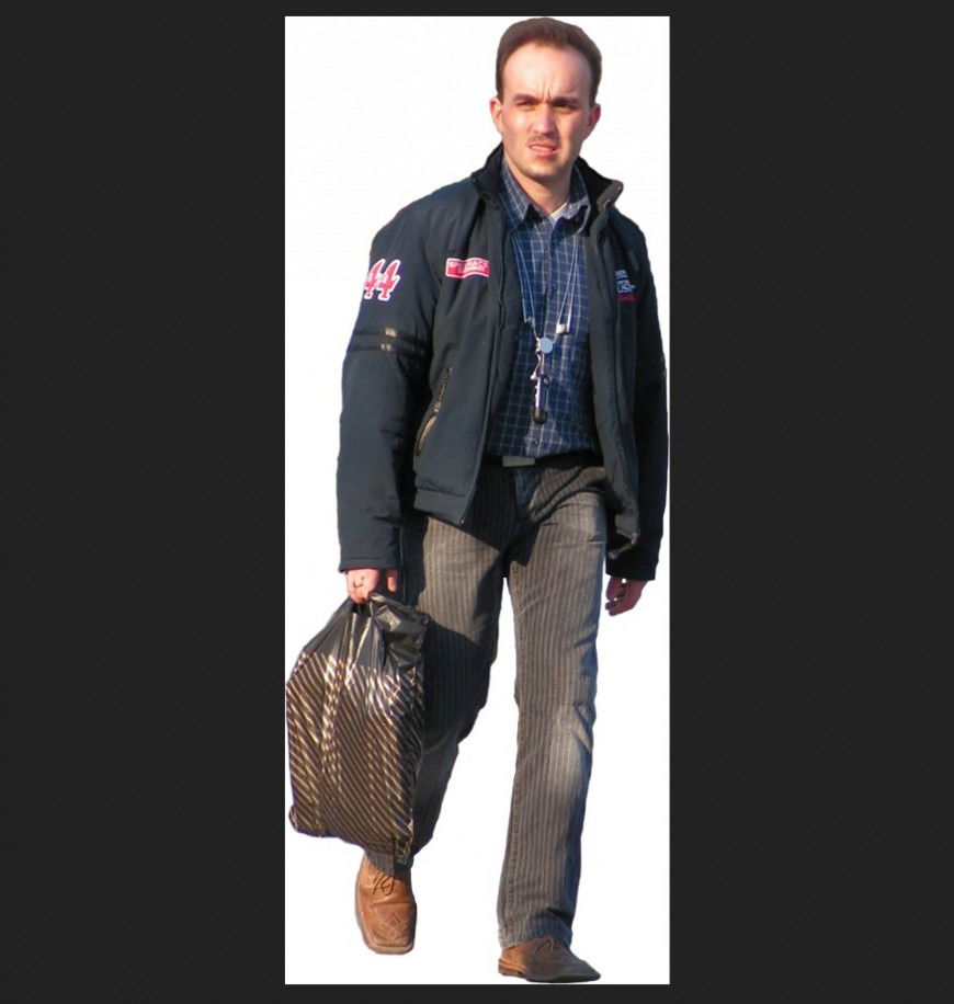 Middle aged man layout JPEG file, walking position detail, coloring detail, polythene bag detail, clothing detail, accessories detail, jacket detail, shoes detail, etc.