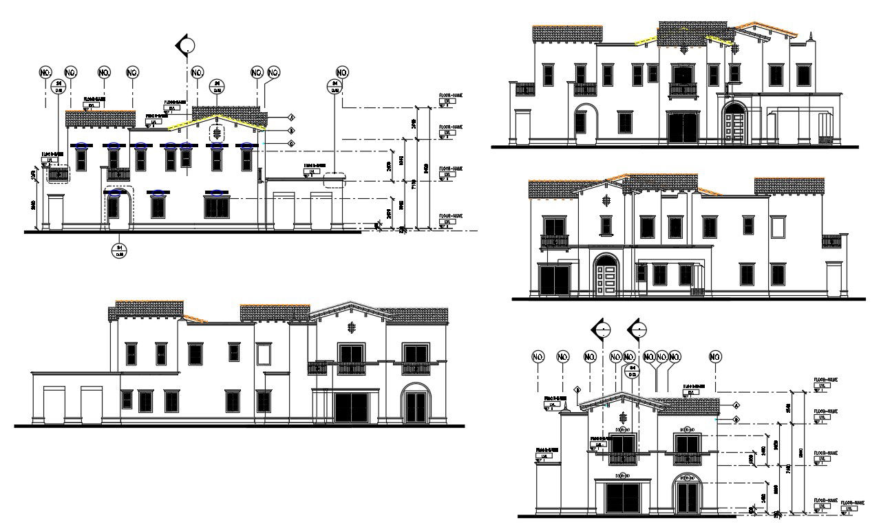 A Villa elevation details design draw in autocad format. Villa elevation details download file, Villa elevation details dwg file, Villa elevation details