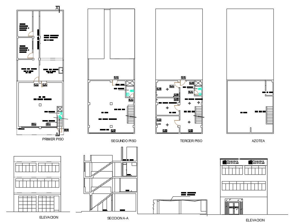 A House layout design including in elevation plan, section details, and plan details in kitchen, bedroom, living room, dining room, etc.House layout design download file,