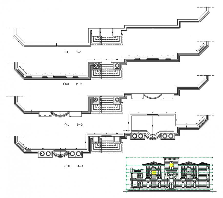 Villa elevation design dwg file. With section line detail, front elevation of a villa, morden door and window detail etc in autocad fromat.