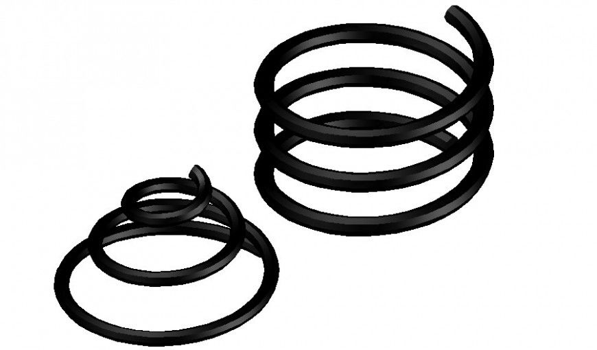Spring 3 D modal autocad file, isometric view detail, thickness detail, colouring detail, three layer detail, not to scale detail, etc.