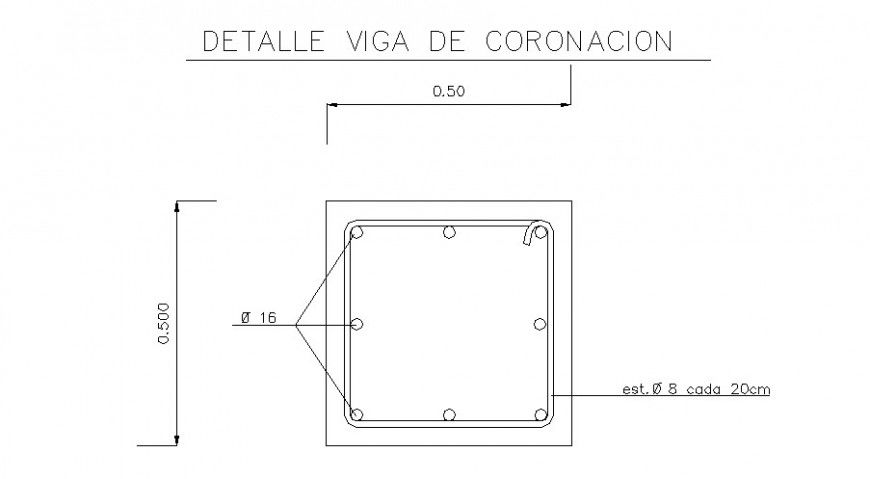 Crown beam detail dwg file, dimension detail, naming detail, square shape beam detail, stirrups detail, bolt nut detail, reinforcement detail, 20cm detail, concrete mortar detail, not to scale detail, etc.