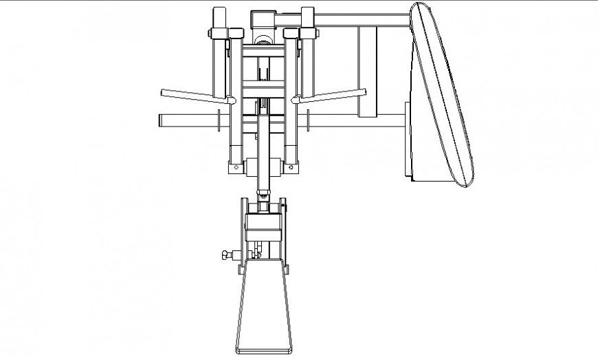 Needle gym equipment plan autocad file, front elevation detail, bolt nut detail, reinforcement detail, grid line detail, cross line detail, grid line detail, not to scale detail, thickness detail, hatching detail, hook section detail, etc.