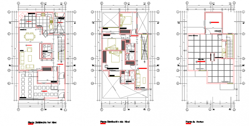 Here the Single family housing project design drawing with ground .first and second floor layout plan design drawing with working design and center line layout design drawing with all detailing design in this auto cad file.