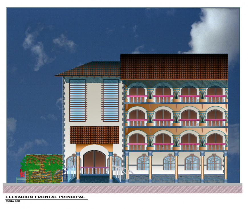 House front elevation dwg file. with front elevation detail of a housev project and glass detail of a house widows and door detail, balcony detail, etc.