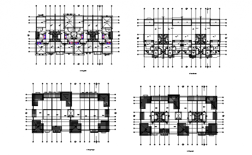 Row-house planning detail dwg file, centre line plan detail, dimension detail, naming detail, cut out detail, brick wall detail, flooring detail, hatching detail, hidden lien detail, furniture detail in door and window detail, not to scale detail, numbering door and window detail, etc.