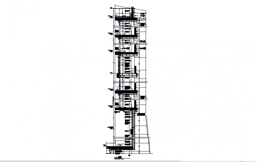 Detail of wall section autocad file, dimension detail, naming detail, leveling detail, hatching detail, reinforcement detail, concrete mortar detail, slab section detail, grid lien detail, cut out detail, not to scale detail, etc.