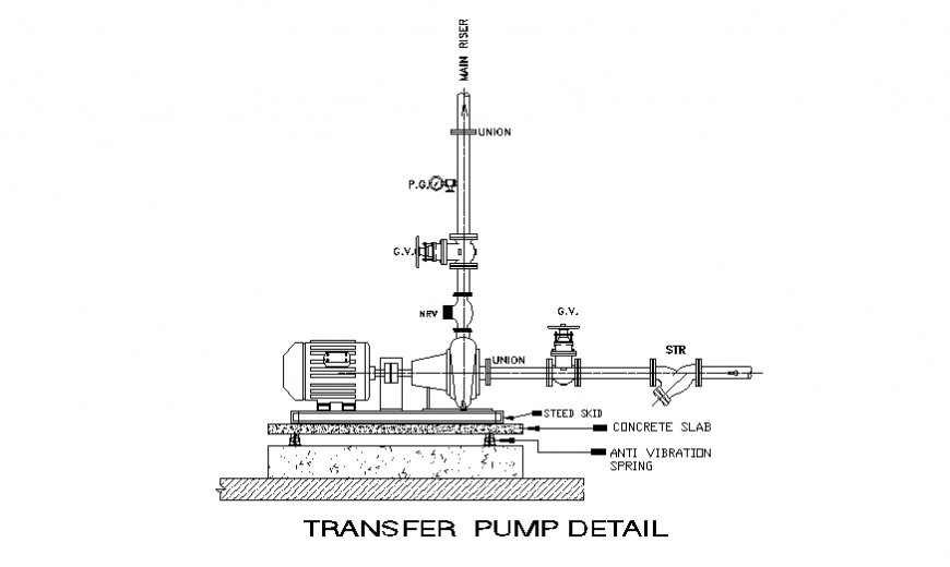 Transfer pump detail dwg file, dimension detail, naming detail, concrete mortar detail, electrical wire detail, motor detail, lock system detail, valve detail, not to scale detail, hidden lien detail, not to scale detail, grid lien detail, etc.