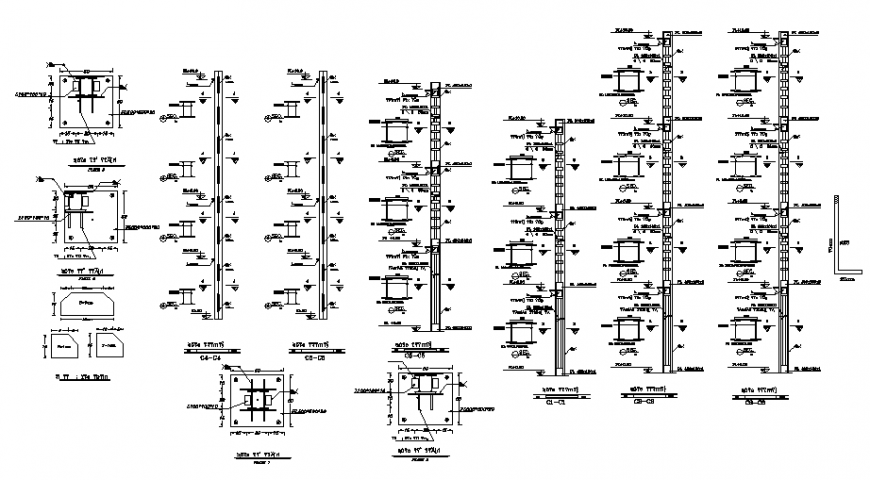 Pile section detail autocad file, dimension detail, naming detail, section line detail, hidden line detail, not to scale detail, bolt nut detail, reinforcement detail, thickness detail, hatching detail, concrete mortar detail, etc.