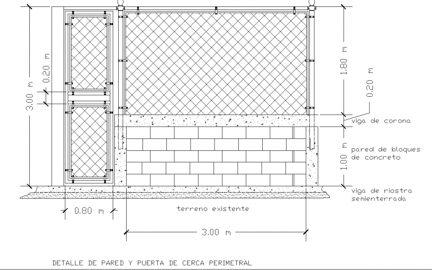 perimeter fence drawing in dwg file. Detail drawing of perimeter fence, fence detail drawing , descriptions and dimensions drawing .