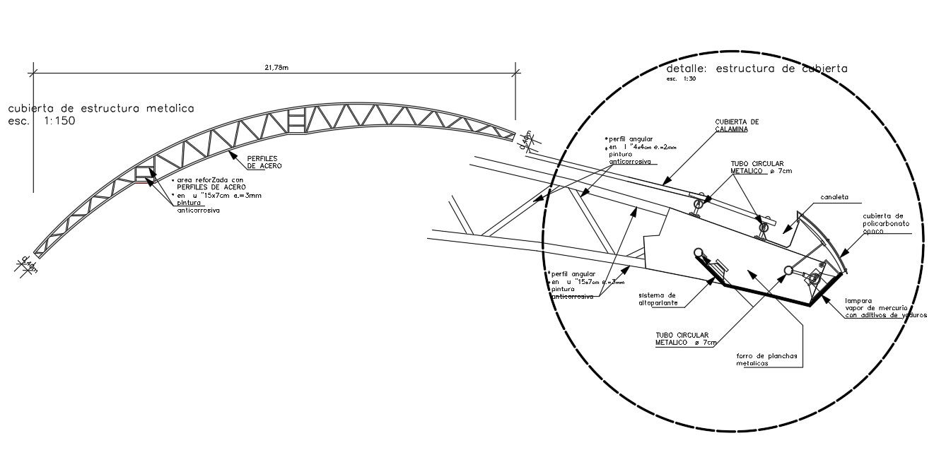 Arc Roof Trust Detail Design. Groove, cover of polycarbonate opaque, lamp mercury vapor with additives iodides, Arc Roof Trust