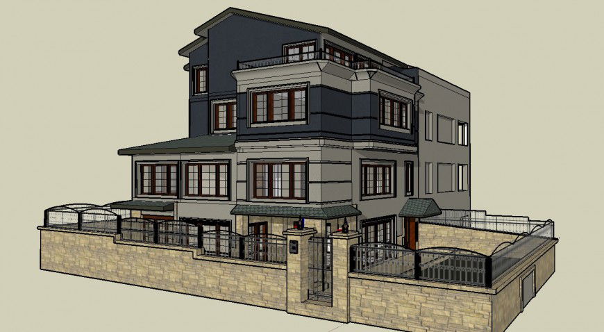 European style construction big house 3d,elevation of a house and exterior complete view is shown, various mutliple floor detailing, 3d concept