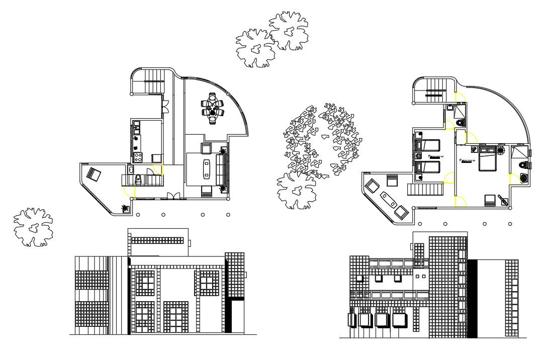 A Villa elevation details elevation plan, layout details, d bedroom, dining room, living room, furniture details, Villa elevation details download file, Villa elevation details dwg