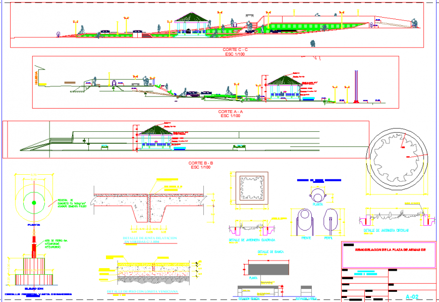 Park-remodel drawing in dwg file. detail drawing of Park-remodel, different types of sections, landscaping foundation details with details and descriptions.