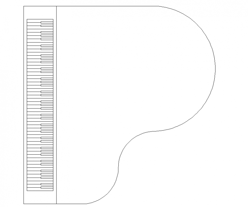 Piano drawing in dwg file. Detail plan drawing of piano, plan view with all details.