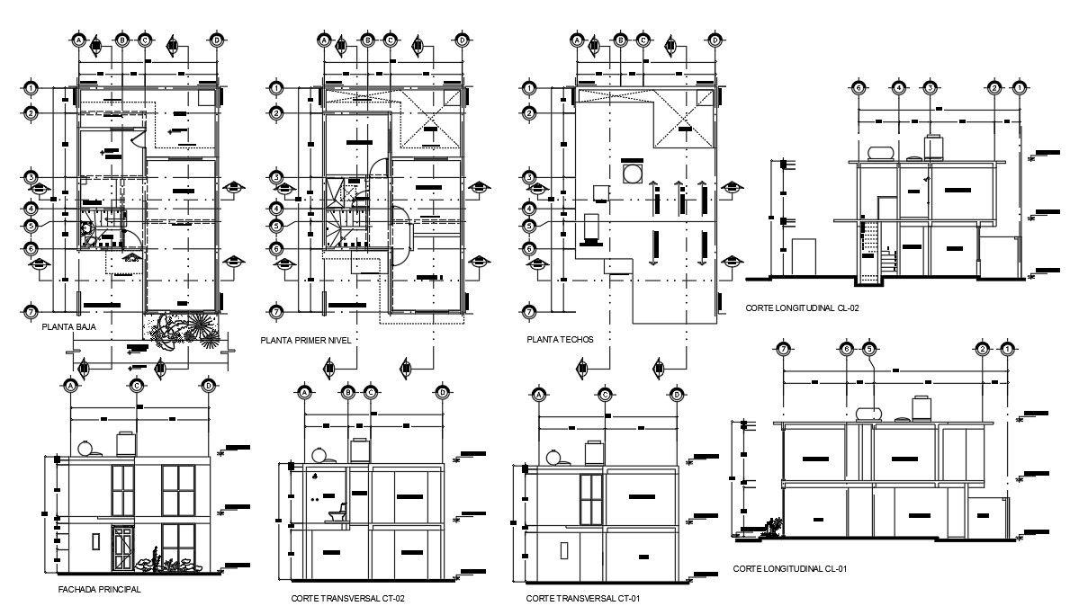 Simple family House details provide in a EMPTY, KITCHEN, CUPBOARD, PROJECTION TRABE, PARKING LOT, LOW LEVEL, FIRST FLOOR LEVEL, PLANT ROOFS, MAIN