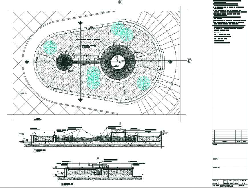 Fountain detail drawing in dwg file. detail drawing of Fountain, plan of fountaion and surrounding area detail, section line , section through the fountain , dimensions and descriptions details.