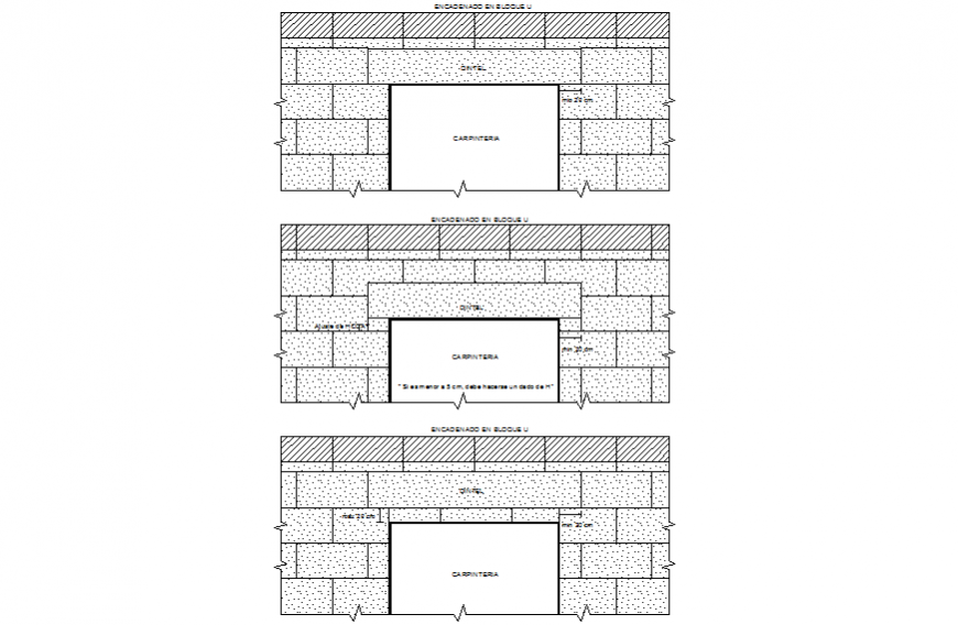 Brick wall elevation detail dwg file, front elevation detail, cut out detail, English bond detail, hatching detail, not to scale detail, line plan detail, thickness detail, lintel and slab thickness detail, concrete mortar detail, etc.