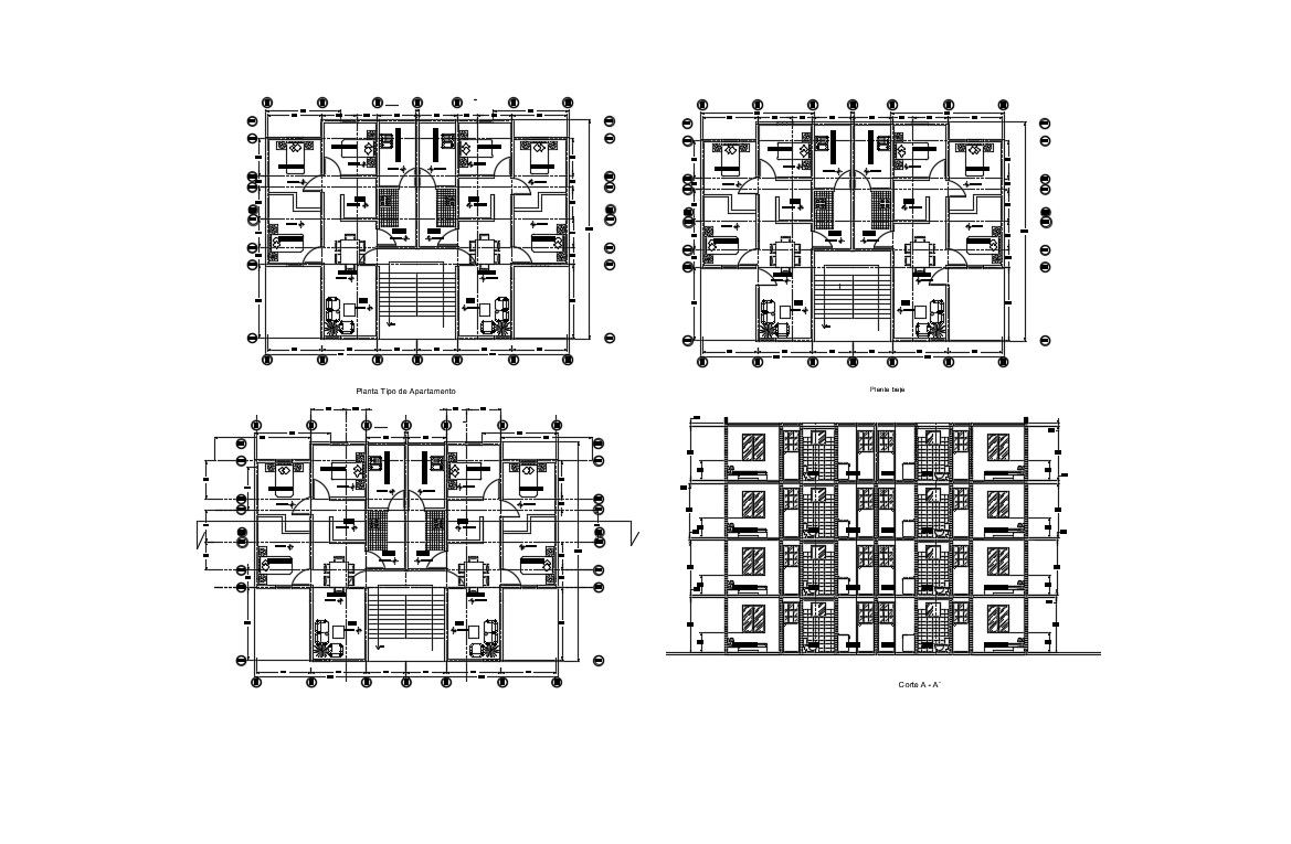 House Plans With Apartment In AutoCAD File including a bedroom, kitchen, dining room, layout plan, elevation design , Apartment House details download file, Apartment House